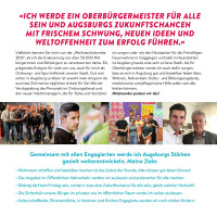 "Weiter so" ist mir zu wenig. Unsere Stadt braucht frischen Schwung und neuen Zusammenhalt. Vorwärts Augsburg.