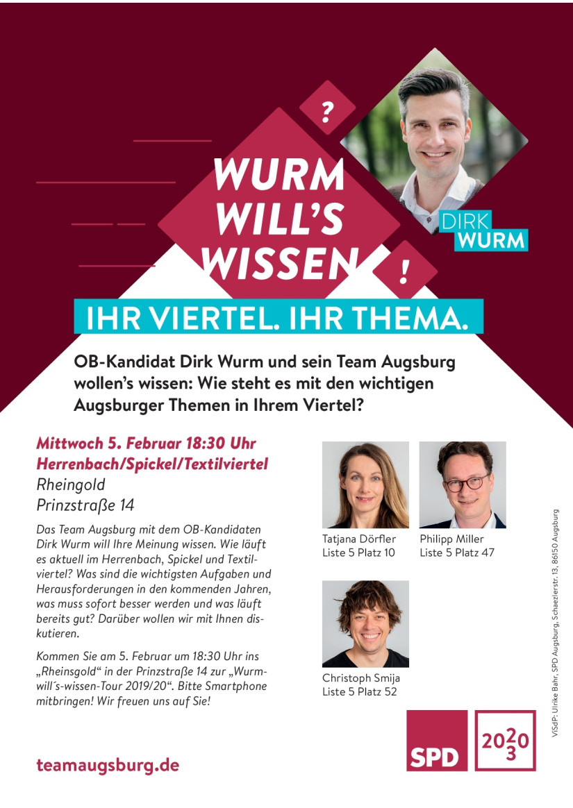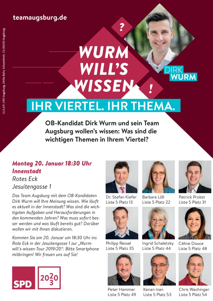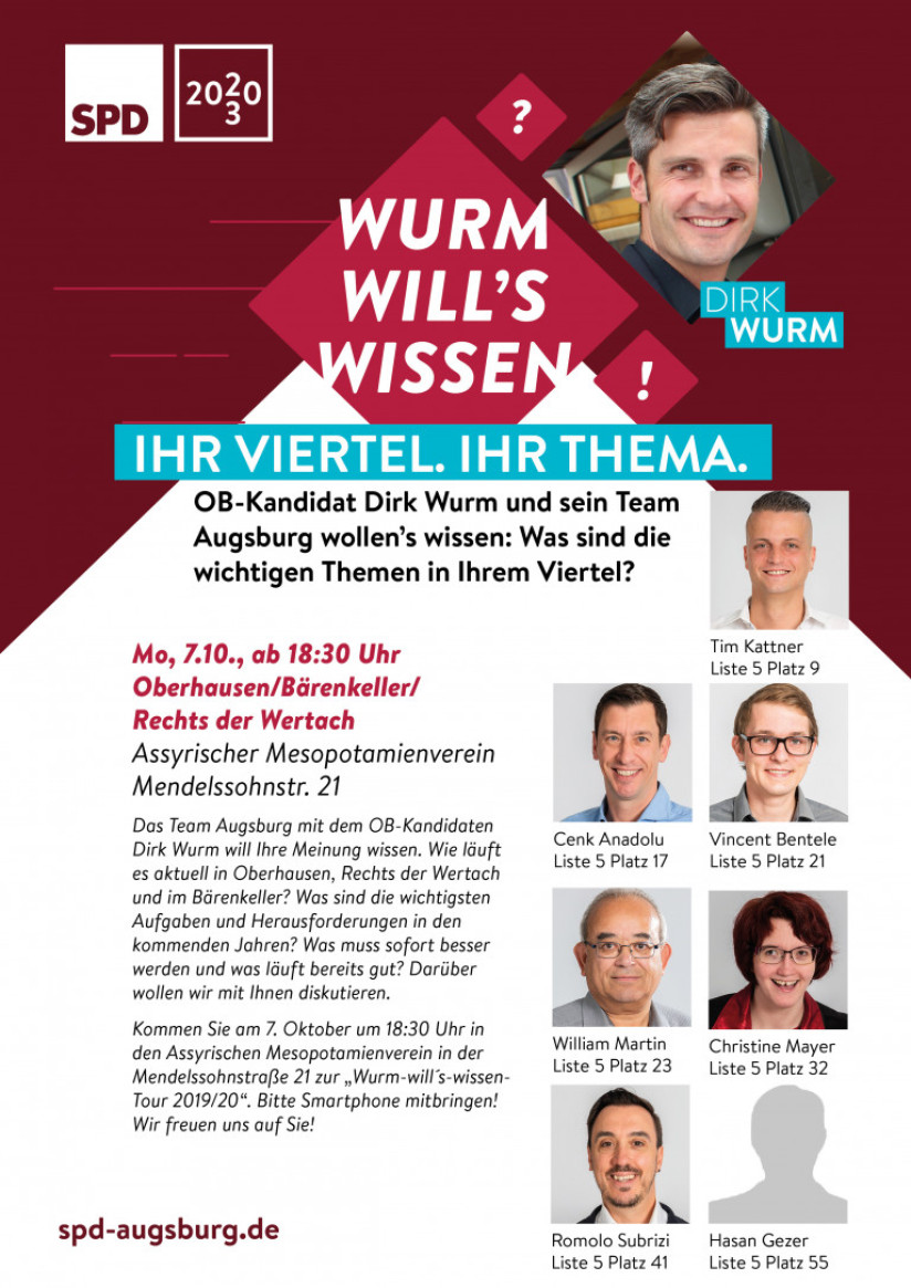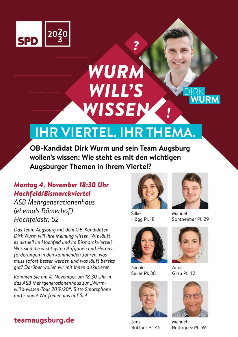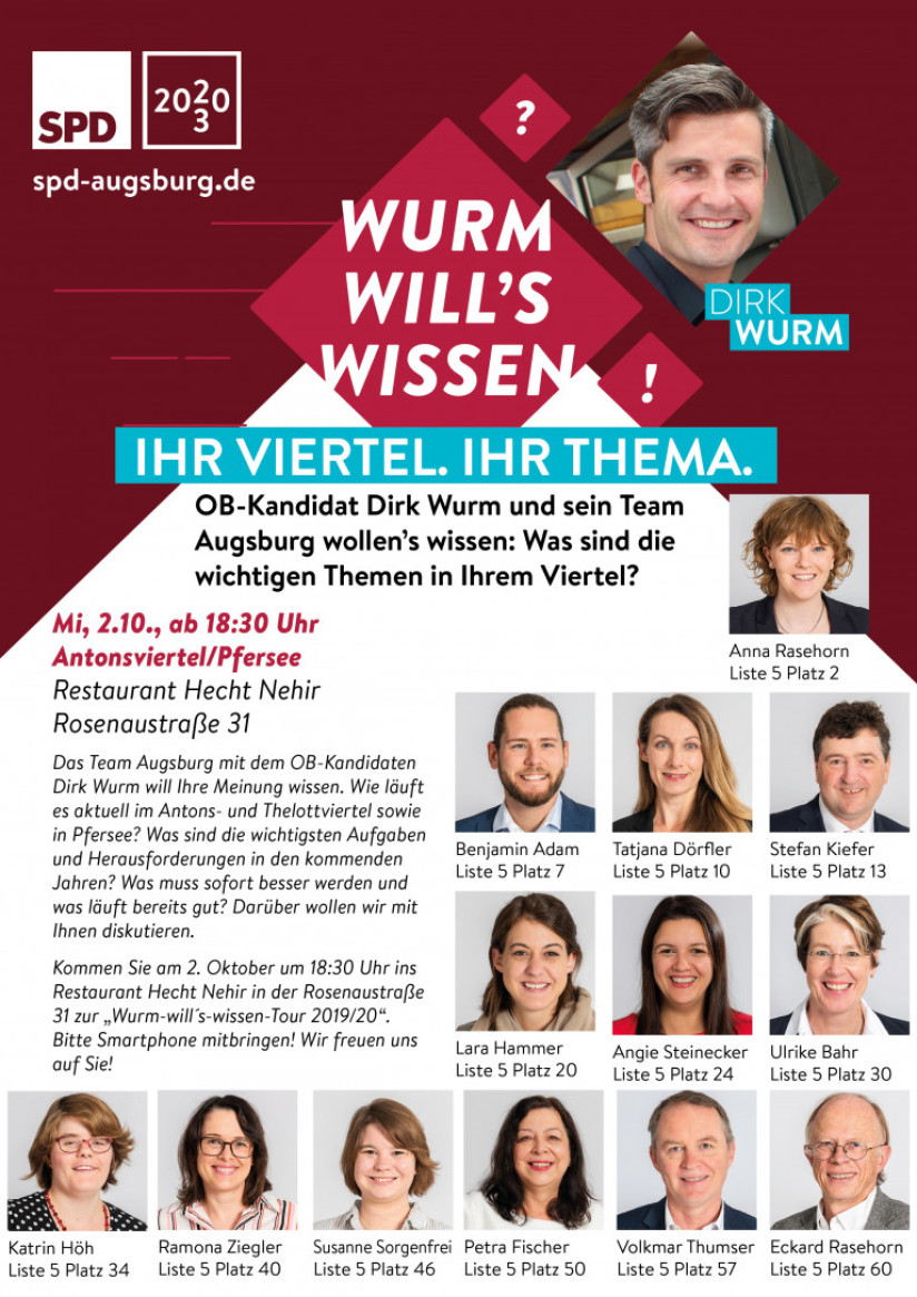 Vom 2.10.2019bis 19.02.2020 organisierte die SPD zwölf Stadtteilkonferenzen unter dem Titel "Wurm will's wissen"