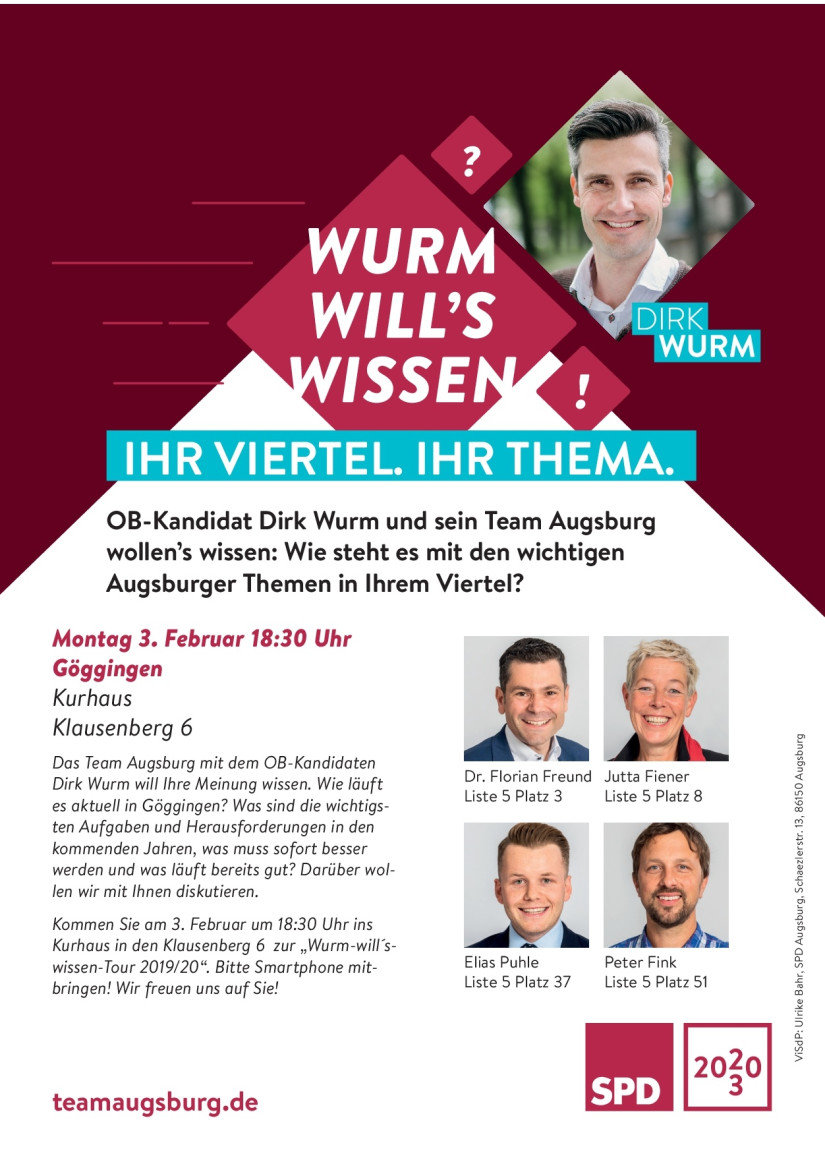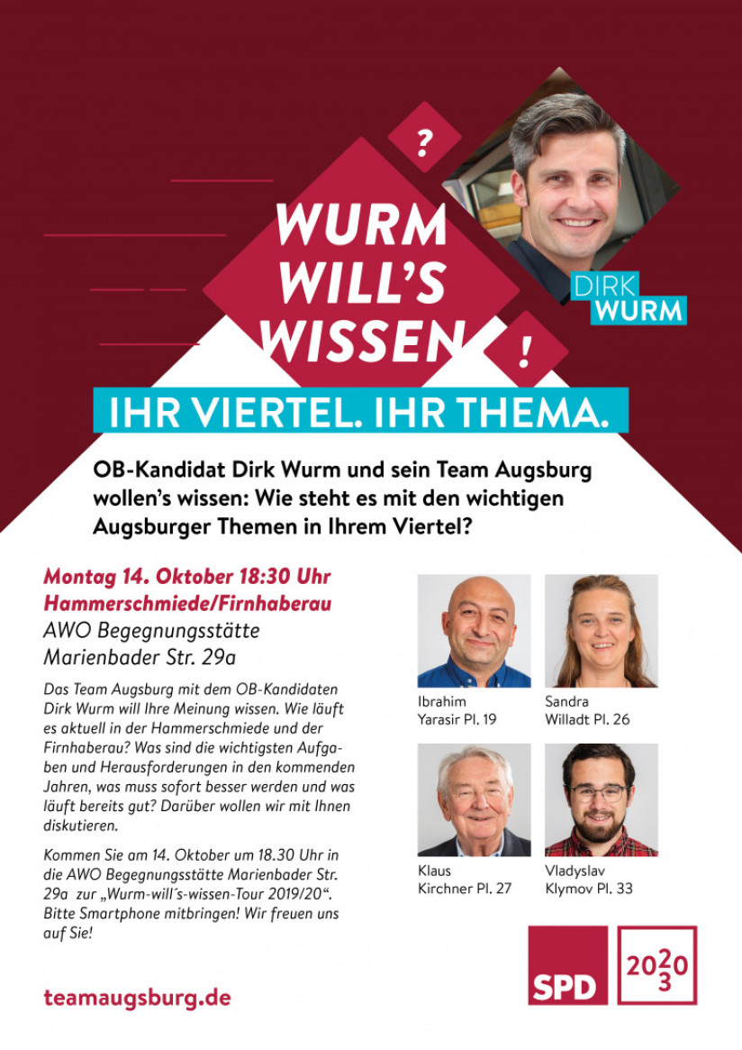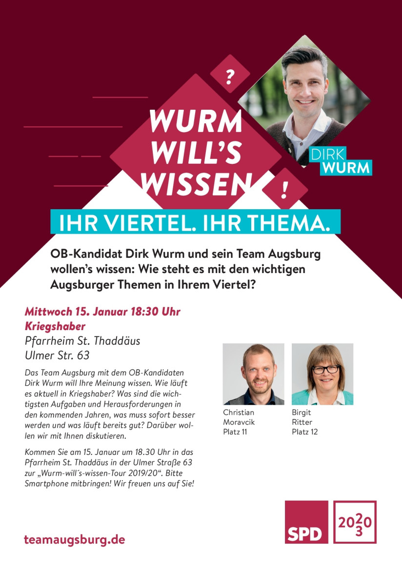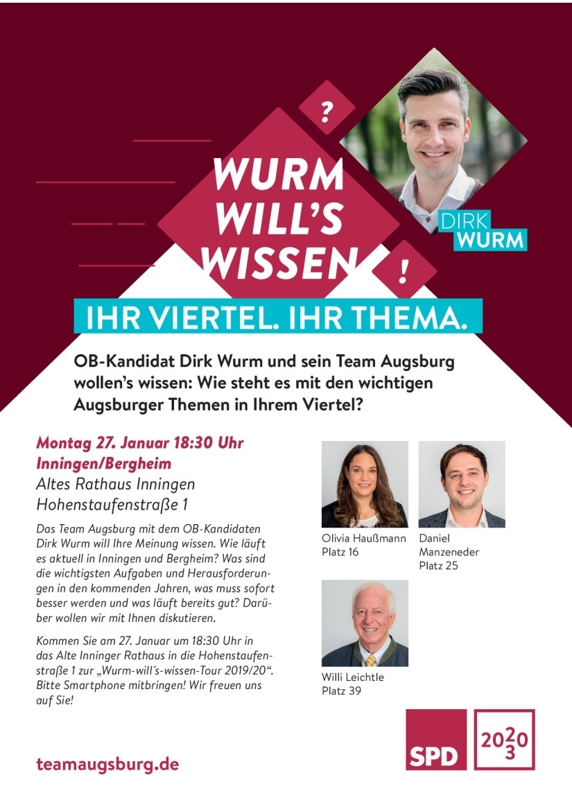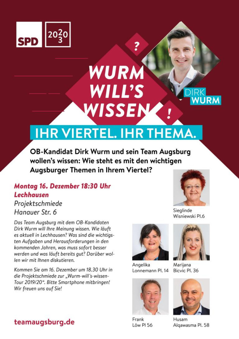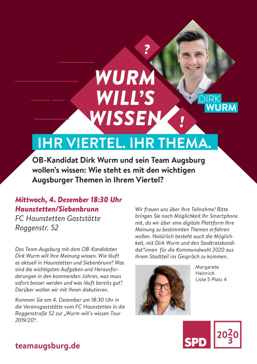Vom 2.10.2019bis 19.02.2020 organisierte die SPD zwölf Stadtteilkonferenzen unter dem Titel "Wurm will's wissen"